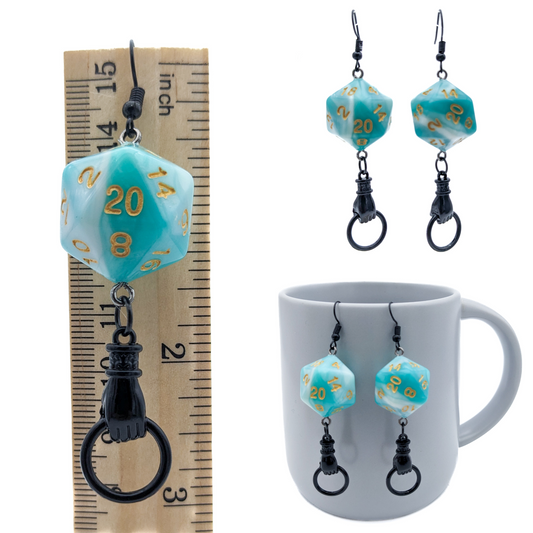 D20 DND Monk Dice Earrings with Real Polyhedral Dice