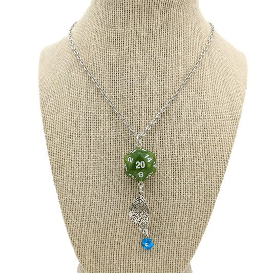 D20 Druid Dice Pendant - DND Green Leaf Necklace