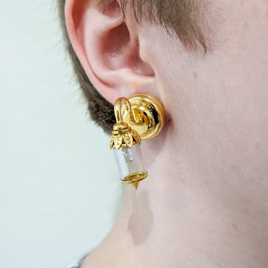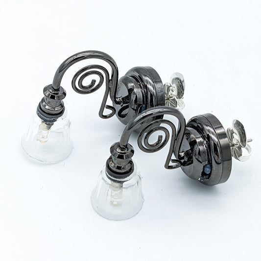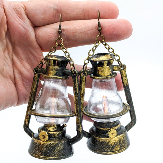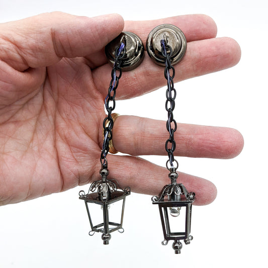 Functional Light Up Mini Hanging Lamp Stud Earrings - Gunmetal Black Lantern Jewelry