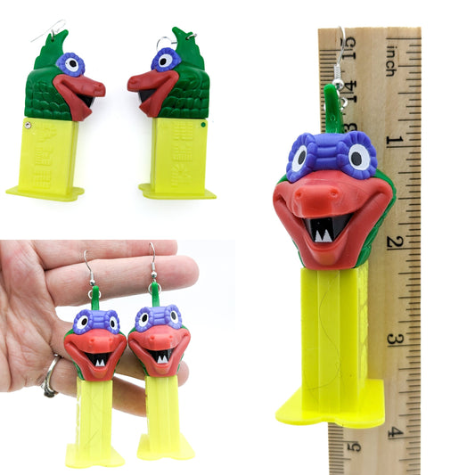 Functional Mini PEZ Earrings - Dinosaur PEZ Dispenser Minis - Cute Kidcore Nostalgia Earrings