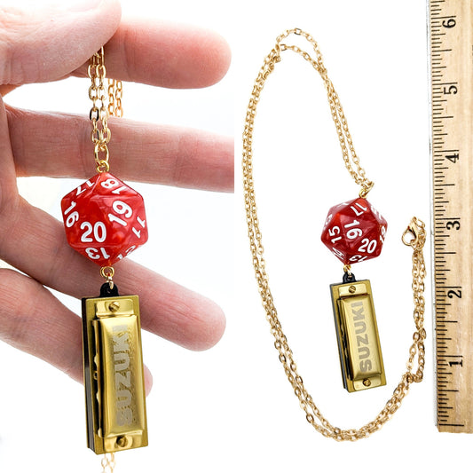 D20 Bard Harmonica Necklace - Functional Mini Harmonica Pendant - TTRPG Jewelry