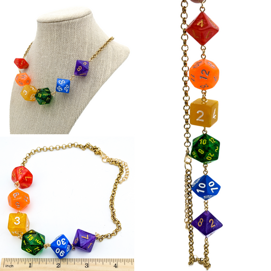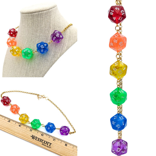 D20 Rainbow Dice Necklace - Translucent Rainbow D20s