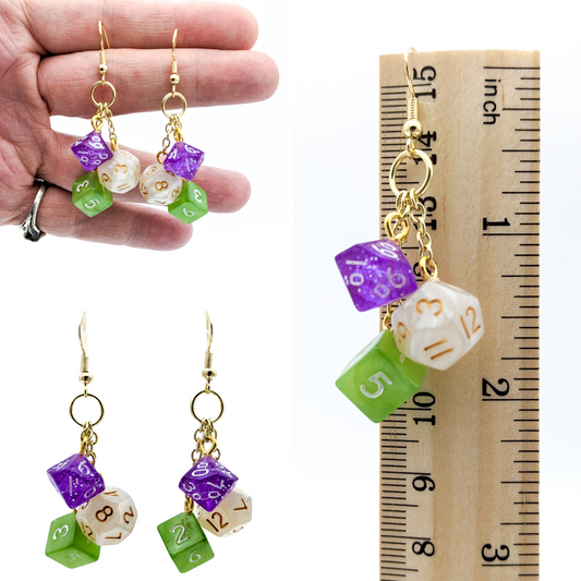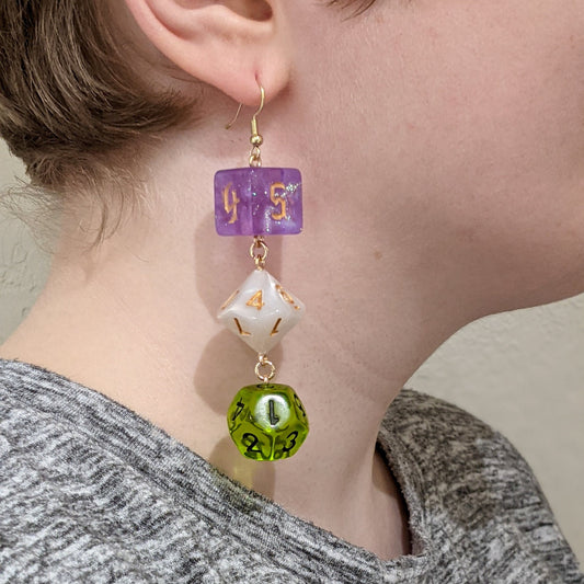 Mini Nonbinary Pride Polyhedral Dice Earrings - DND or Pathfinder