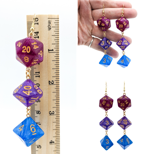Bisexual Pride Polyhedral Dice Earrings - Geeky and Bold - For DND or RPG Lovers