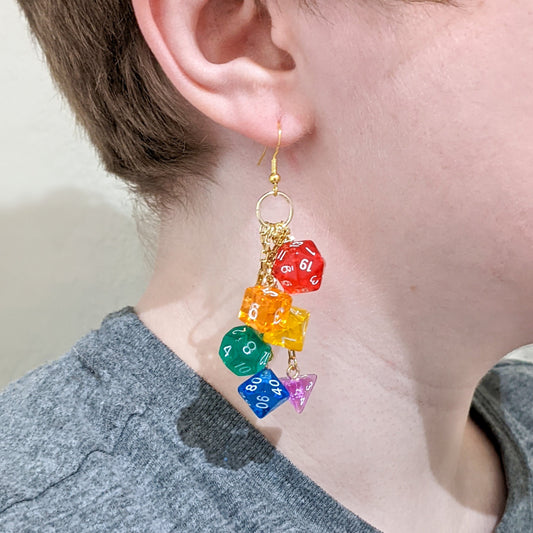 Pansexual Pride Dice Earrings - Standard Polyhedral Dice