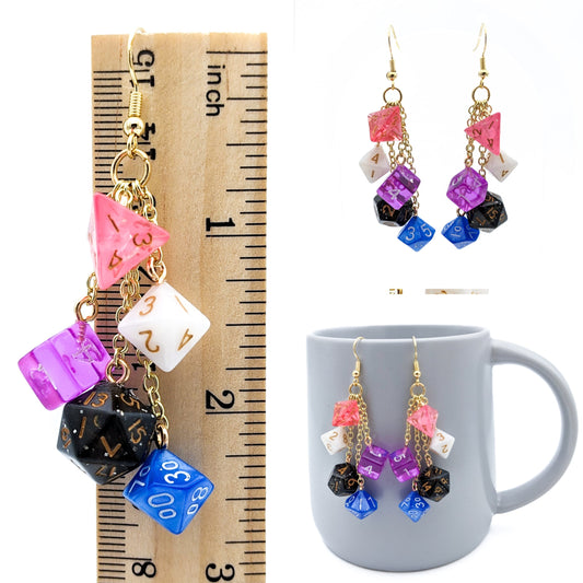 Mini Genderfluid Pride Dice Earrings - DND or Pathfinder