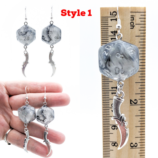 Black Smoke Dice Dagger Earrings for Rogue DND Characters