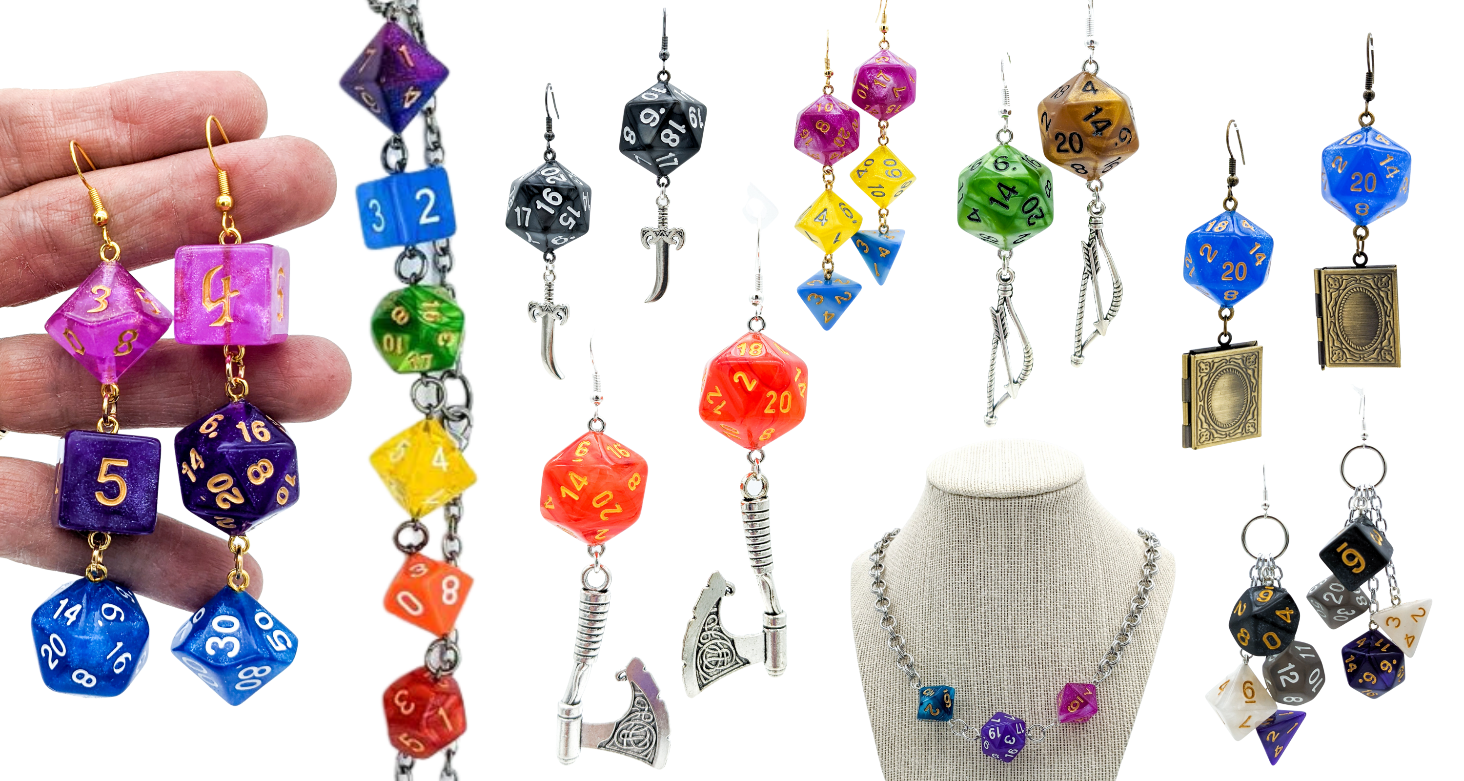 Dice jewelry for any occasion. Wear a whole set of mini dice, or just a single D20. 🐉⚔️🏰🧙🏻♂️🏹🐲🧚♀️
