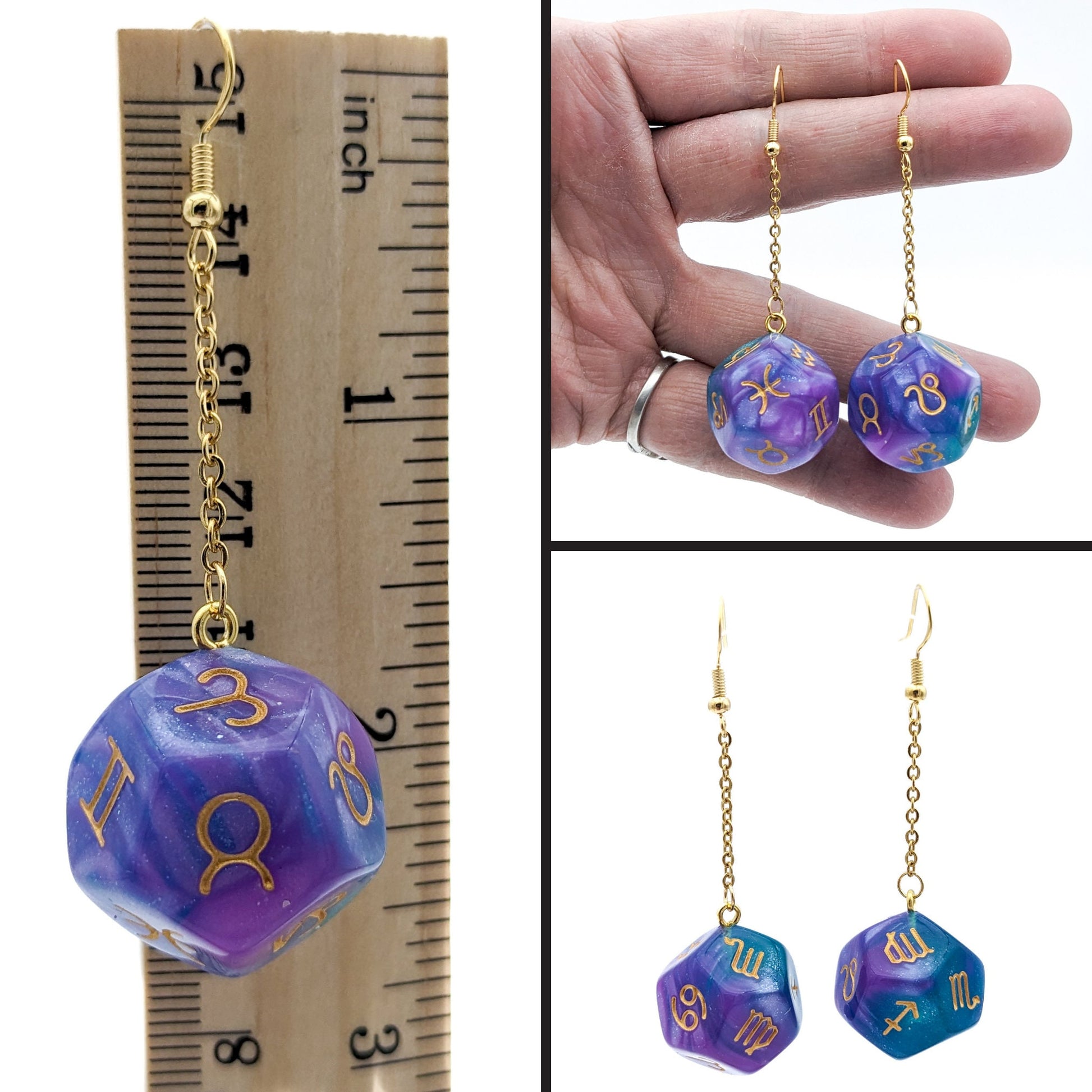 These simple dangles are perfect for everyday wear and will add a touch of fun to your outfit. Perfect for players of tabletop RPGs or anyone who is into astrology.