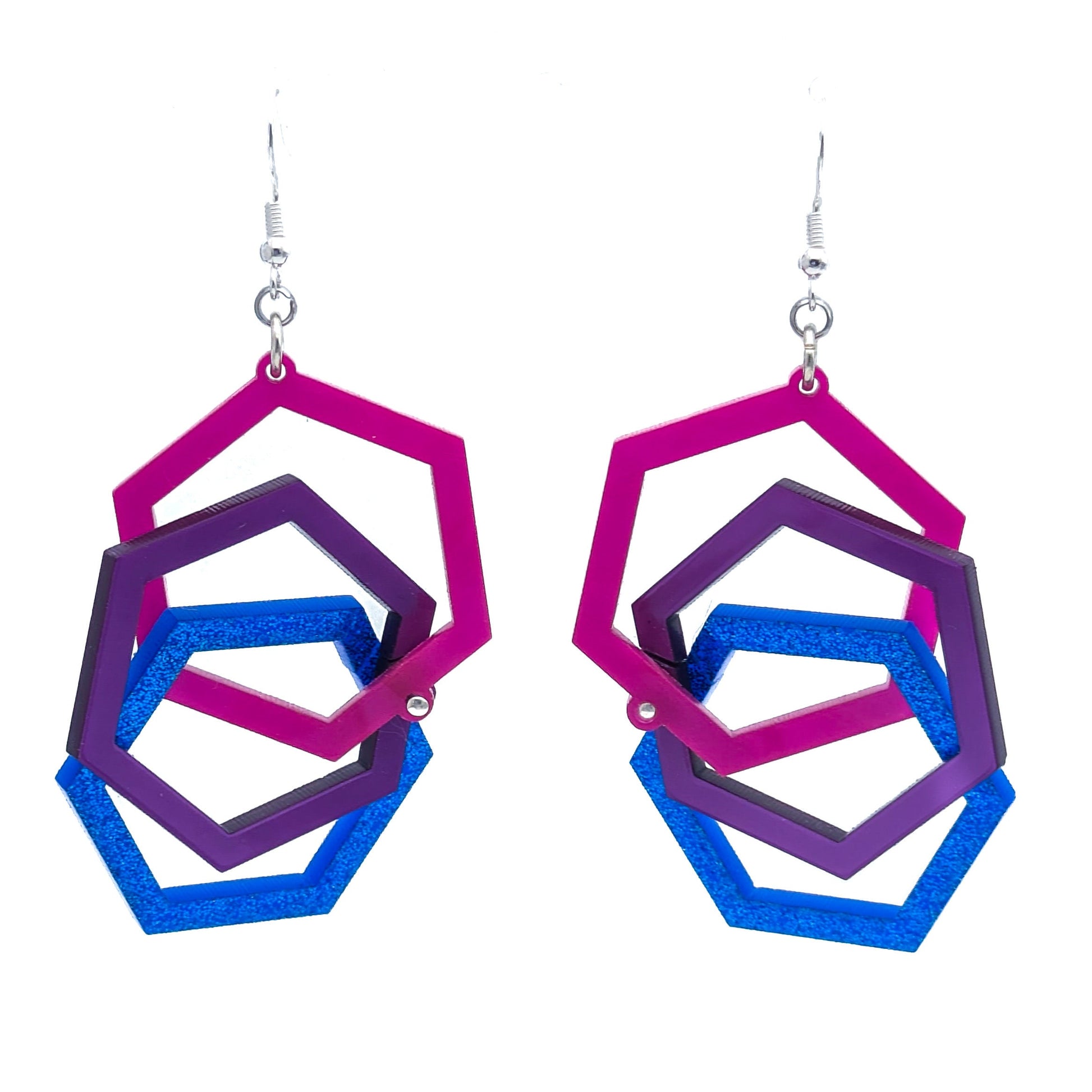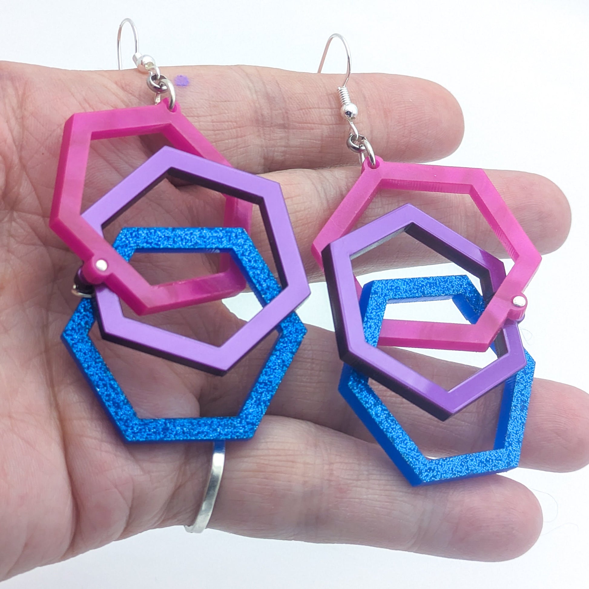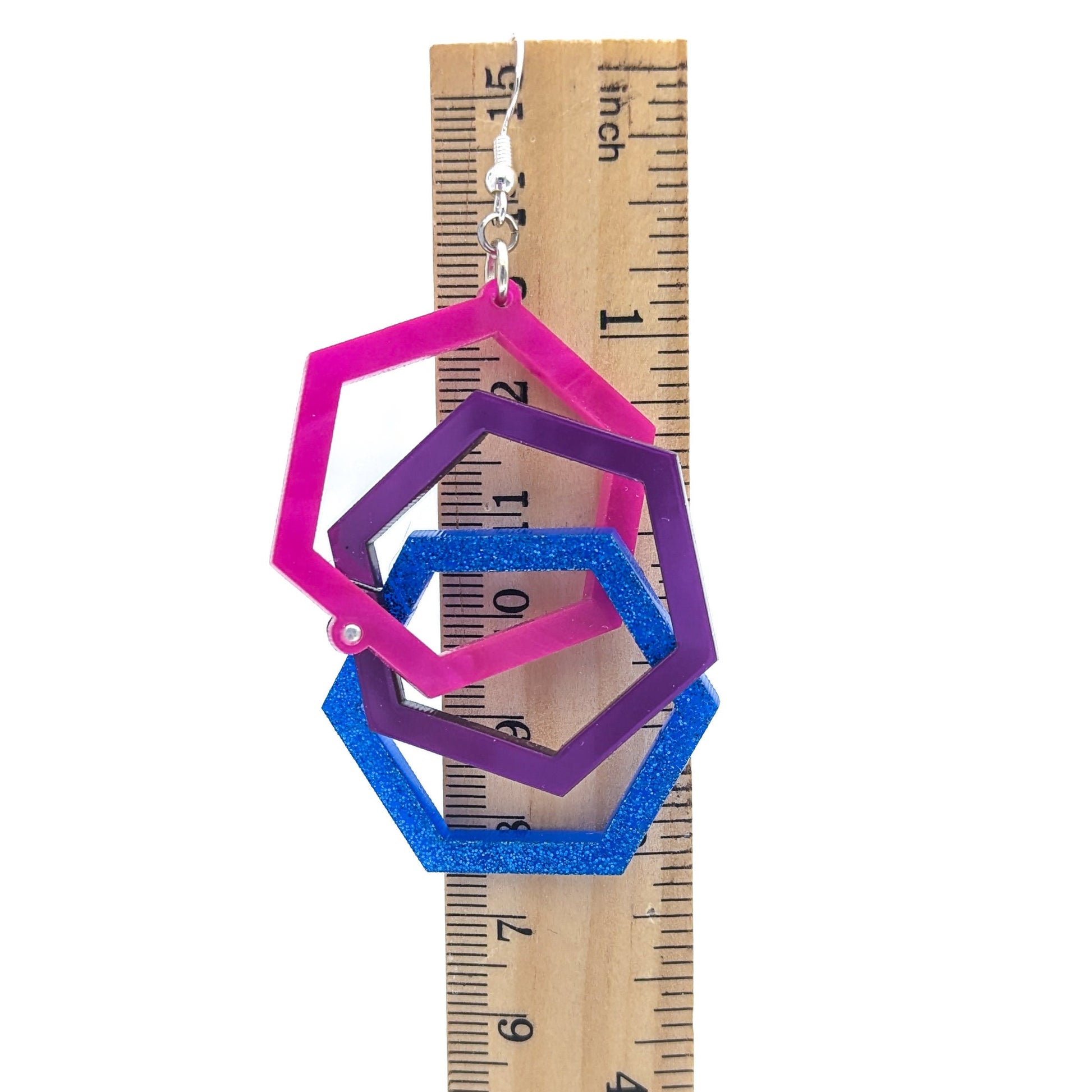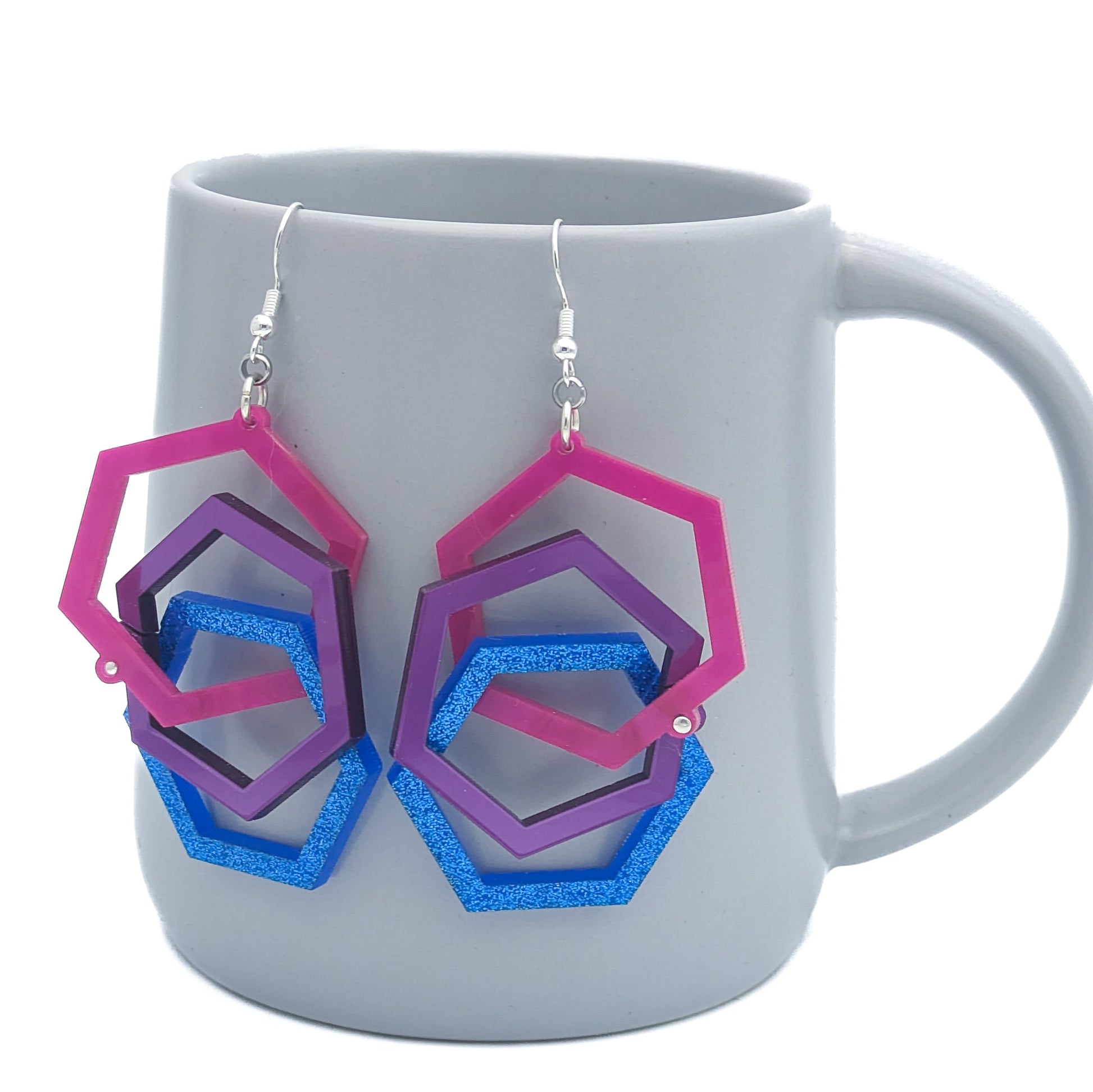 Bi Pride Hexagon Earrings - Bisexual Flag Colors - Linked Hexagon Earrings - Laser Cut Acrylic