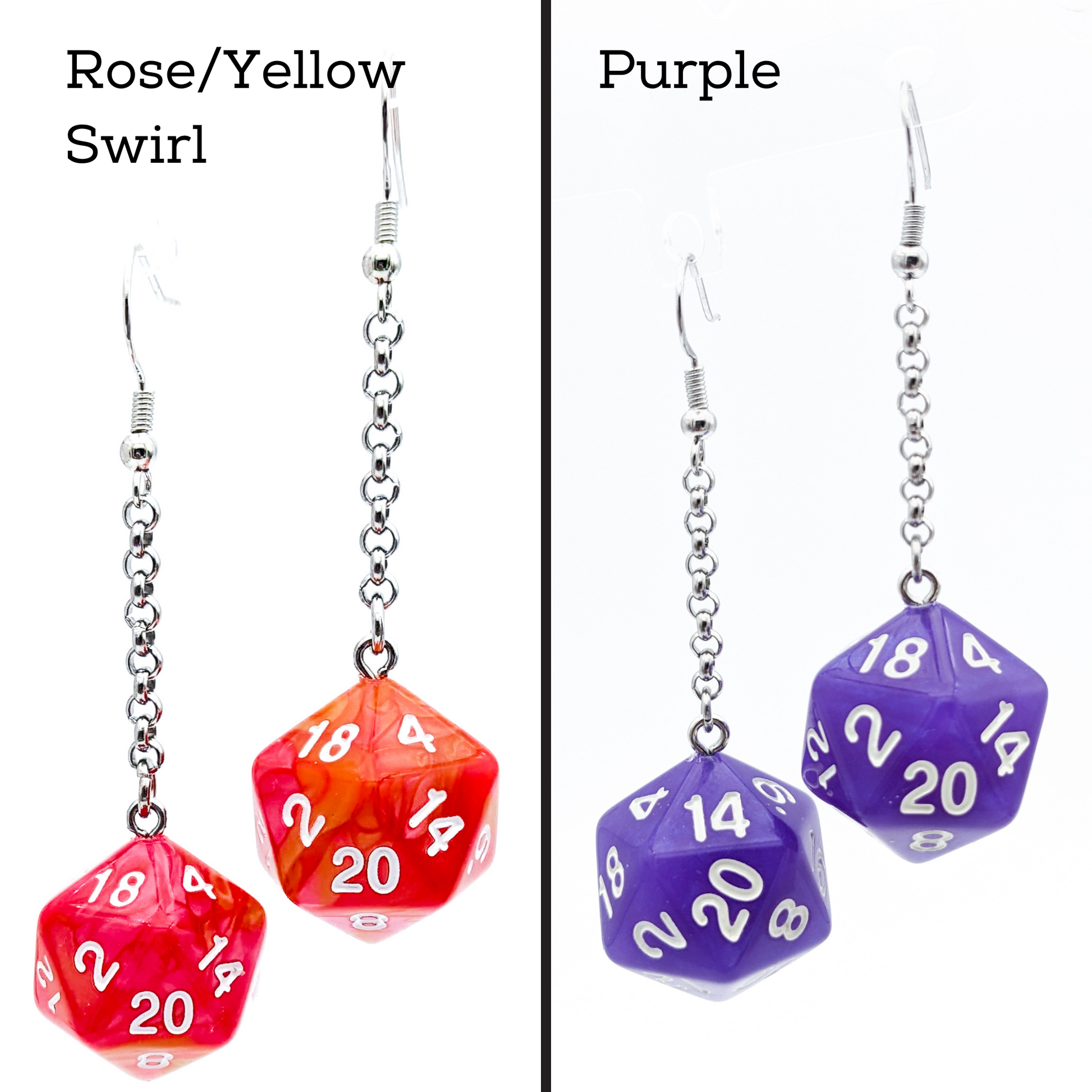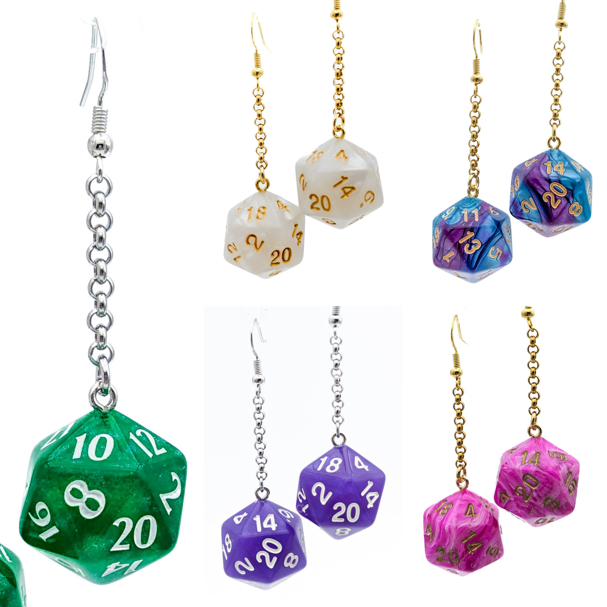 Colorful D20 Dice Earrings - DND Polyhedral Dice