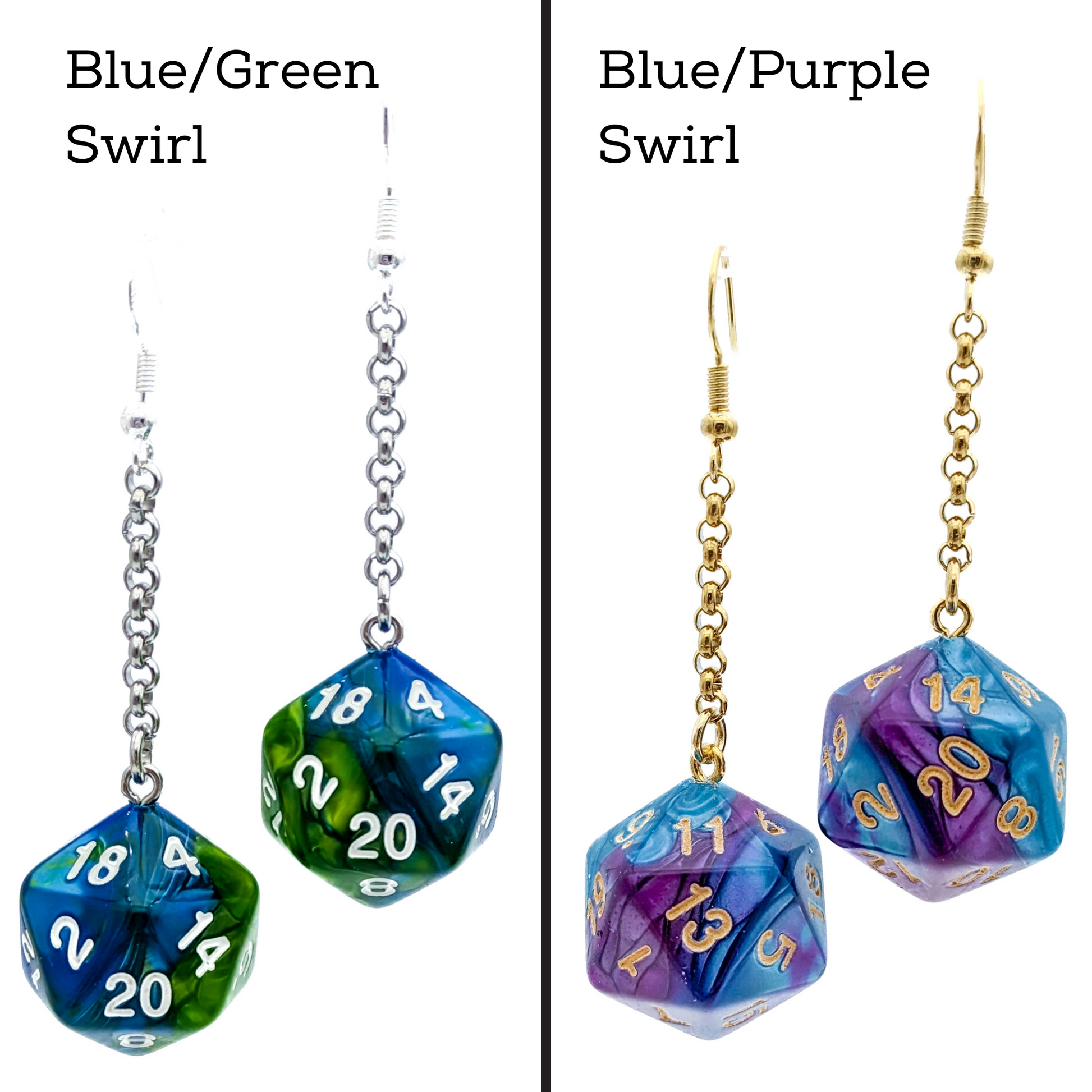 The colors are beautiful -- everything from sparkling green to a blue/purple mix -- so choose your favorite. Please keep in mind that colors may vary a bit depending on your monitor, and that swirled dice colors are all unique, so your earrings may have slightly different swirl patterns from those shown.