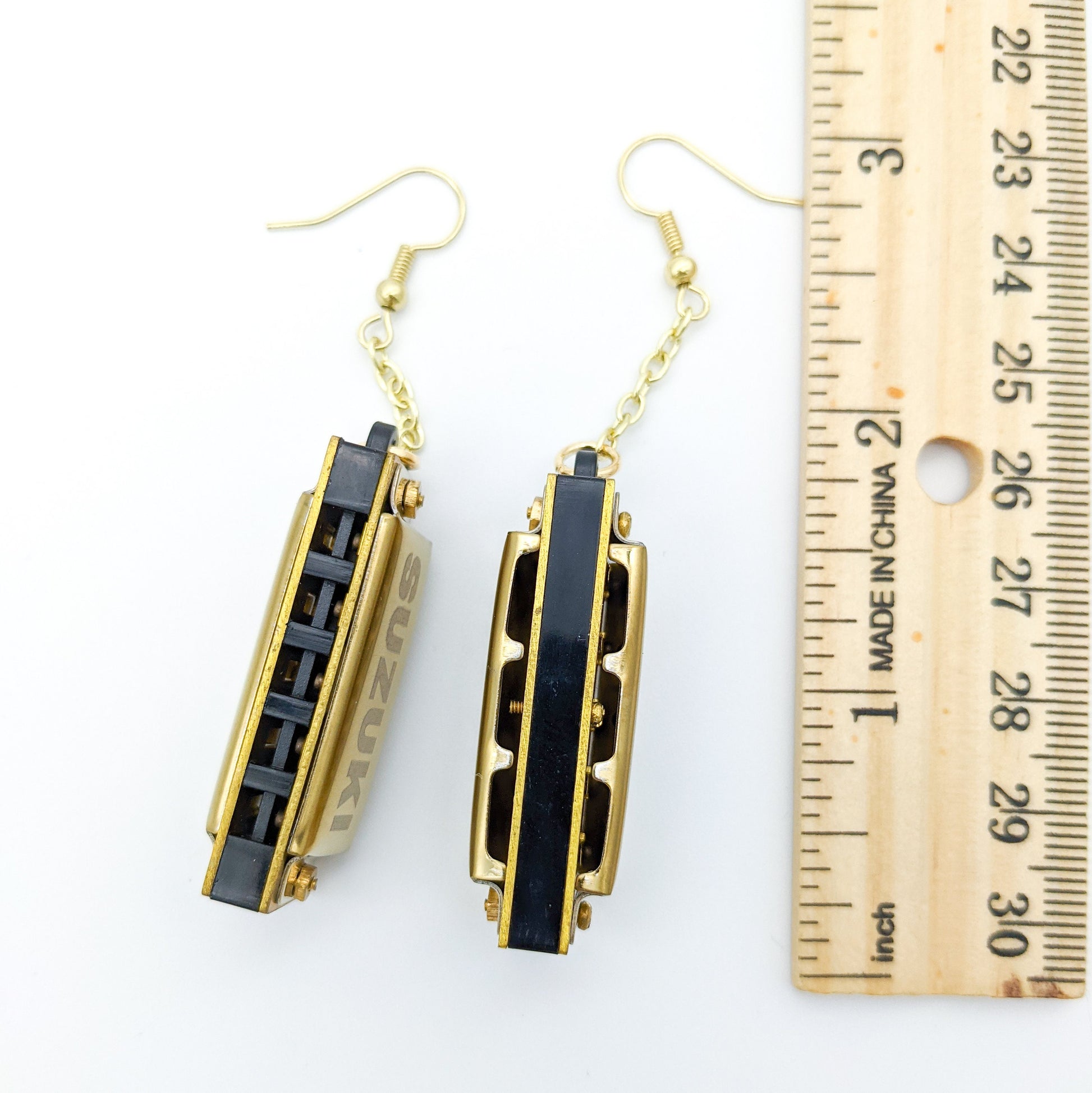 The earrings hang about 3 inches long overall. They are very wearable, weighing less than half an ounce each (10 grams, about the same as a AAA battery). Earring hooks are gold-plated.
