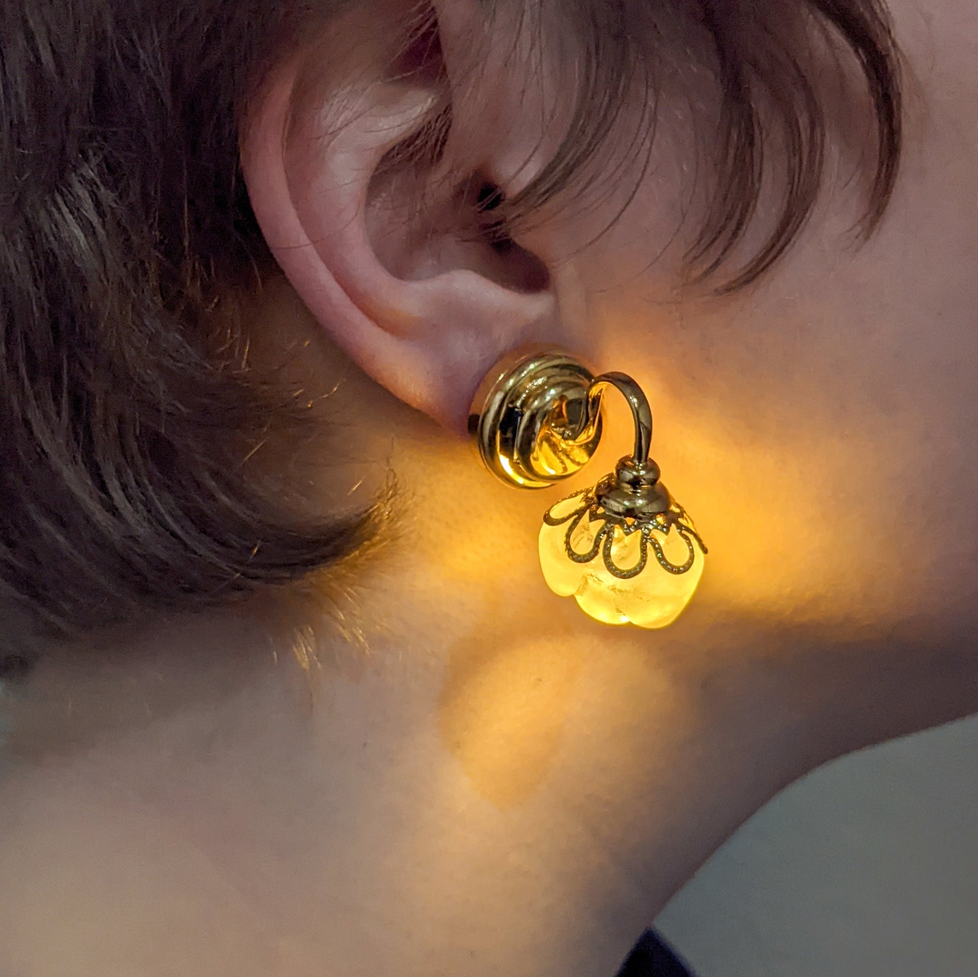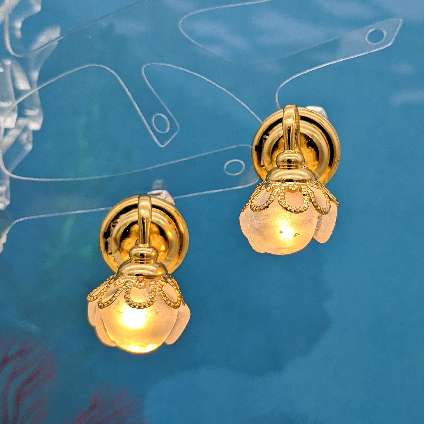 Functional Light Up Rose Wall Light Stud Earrings - Battery Operated Lamps