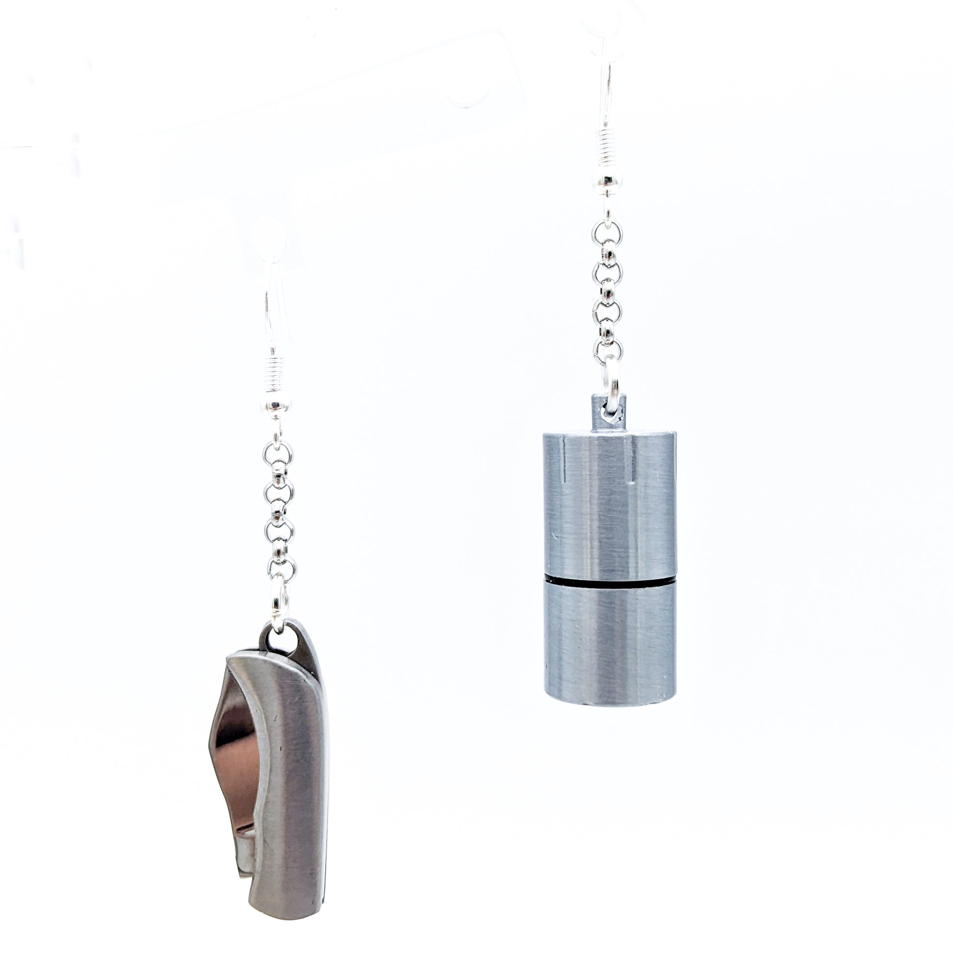 Functional Survival Tool Earrings with Lighter and Pocketknife