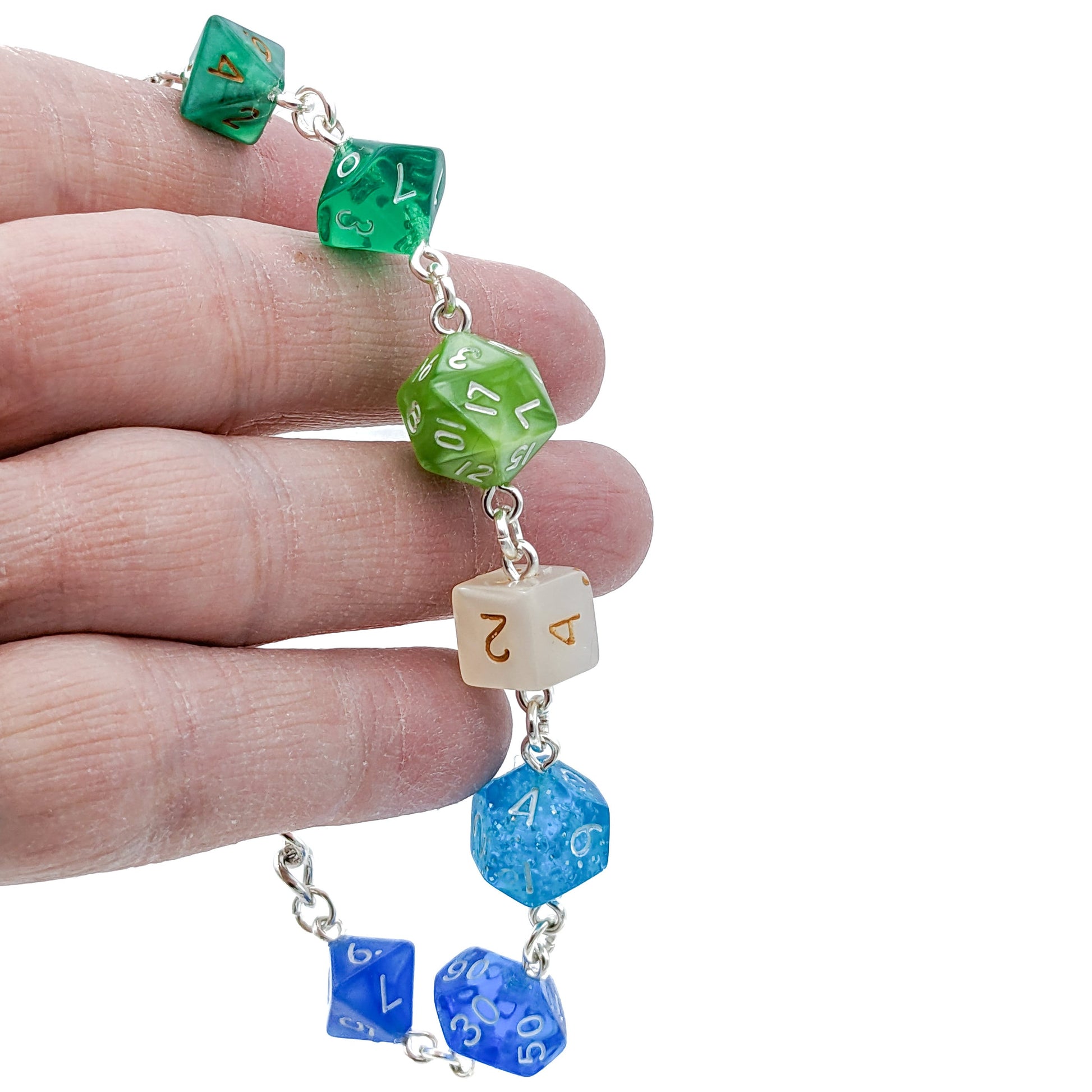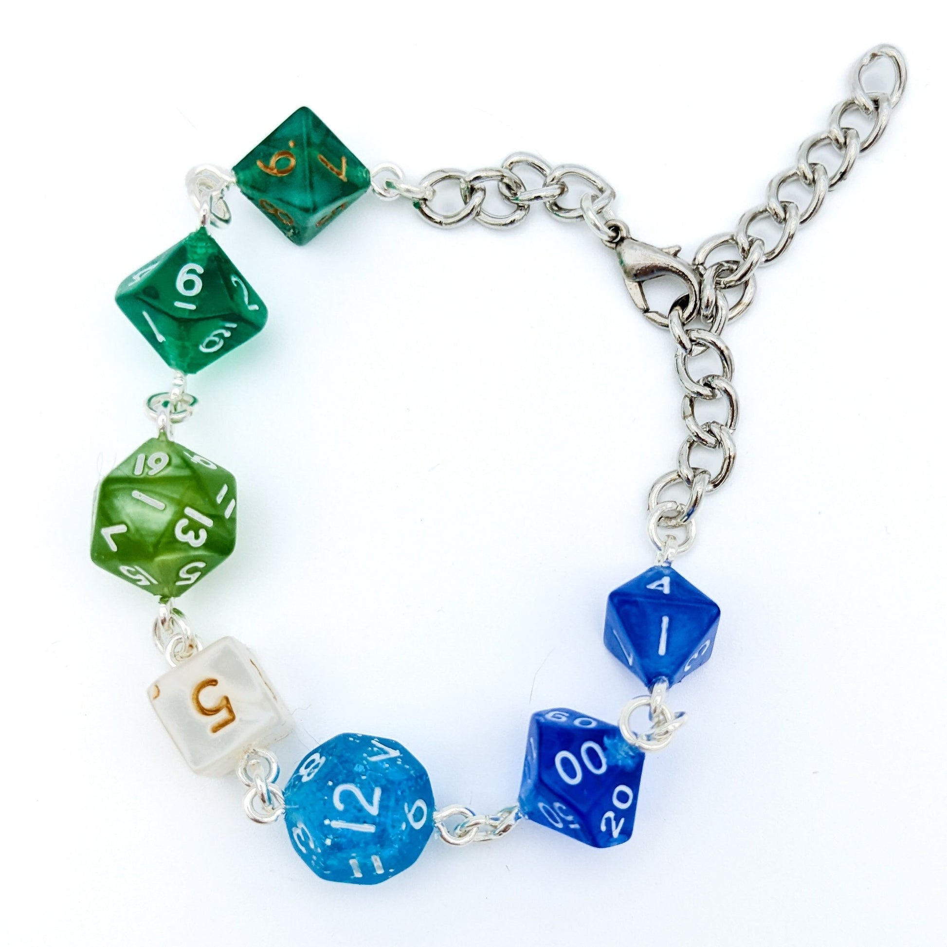 Gay Pride Dice Bracelet with Mini Polyhedral Dice - Vincian Pride Flag Bracelet Tabletop RPG Dice Jewelry Pathfinder Critical Role DnD