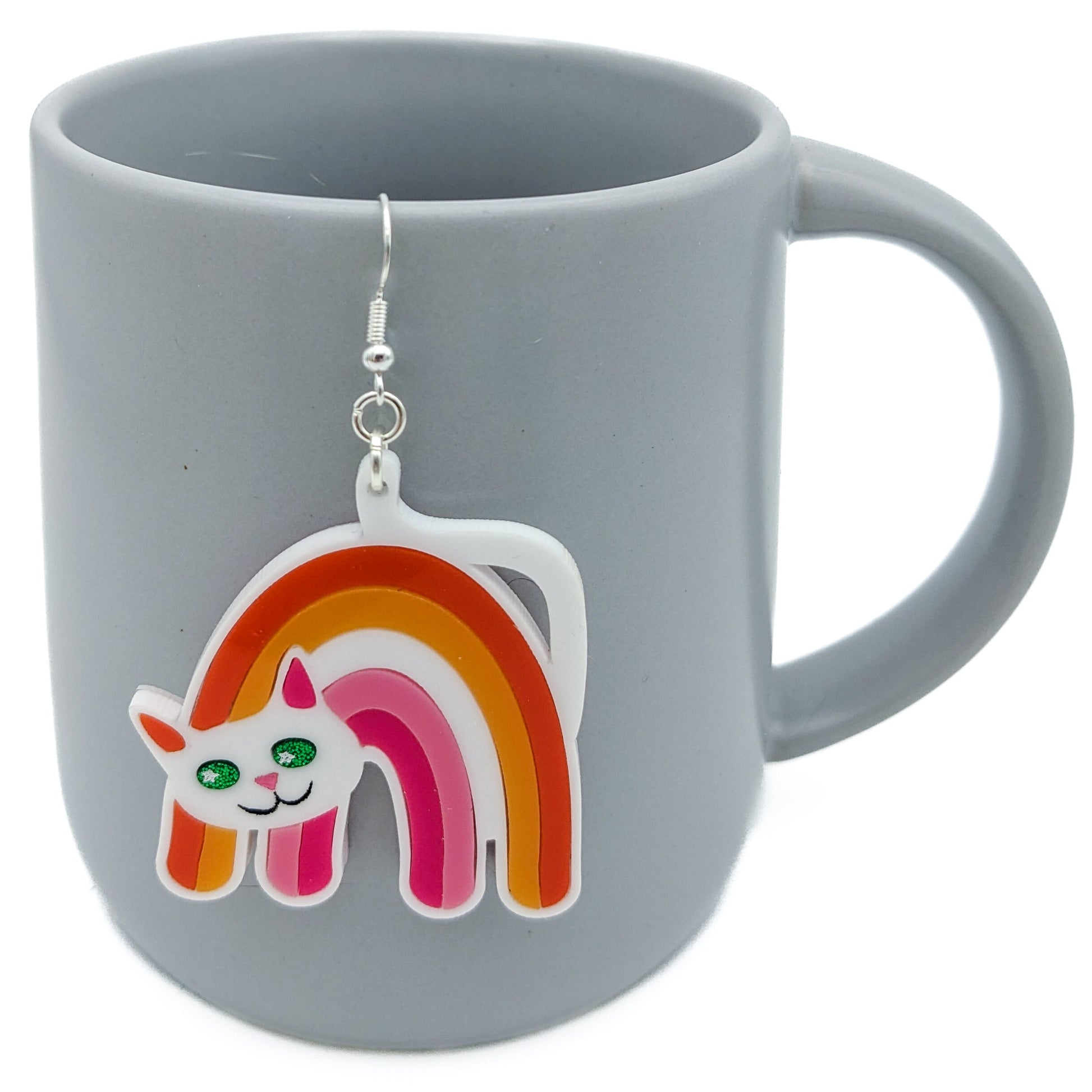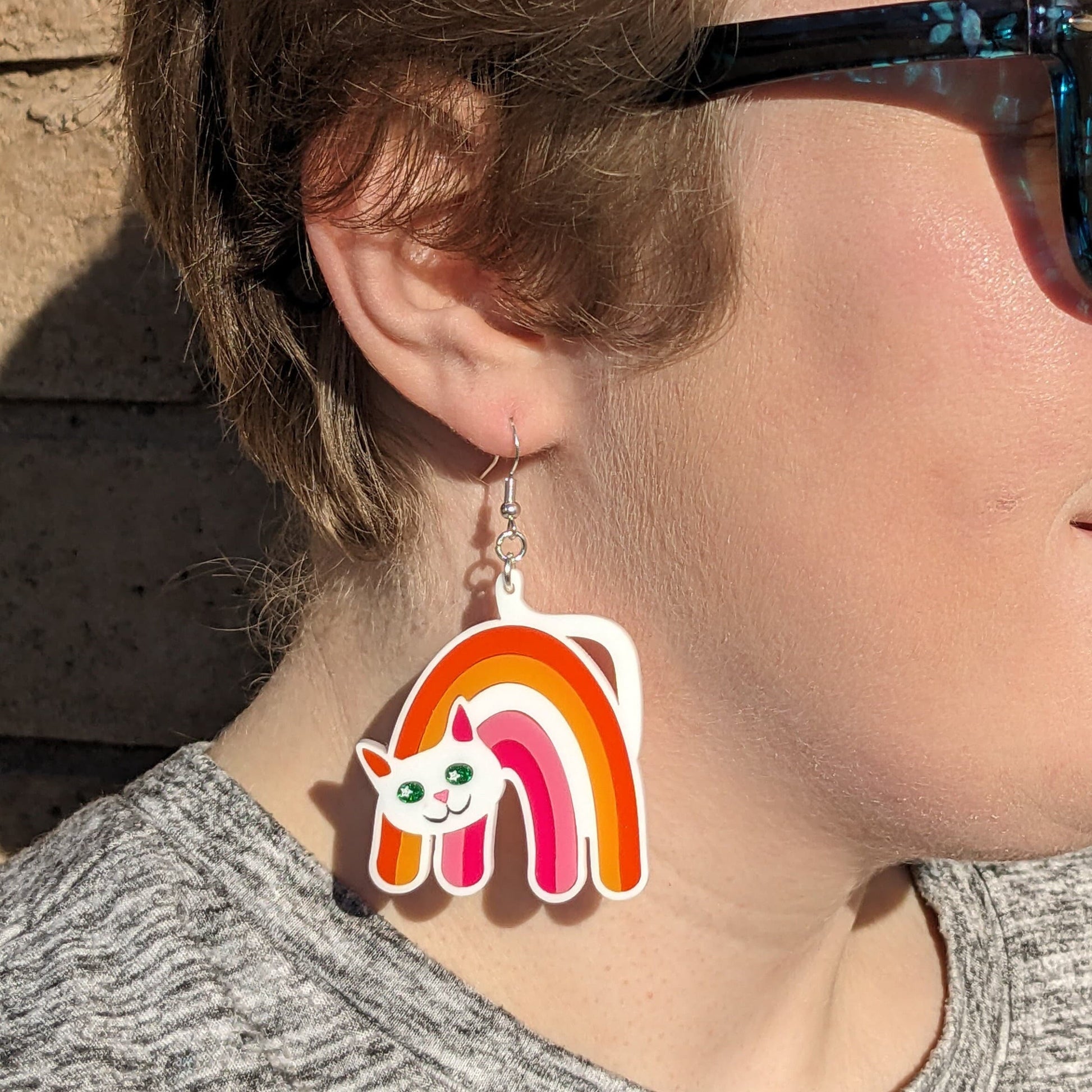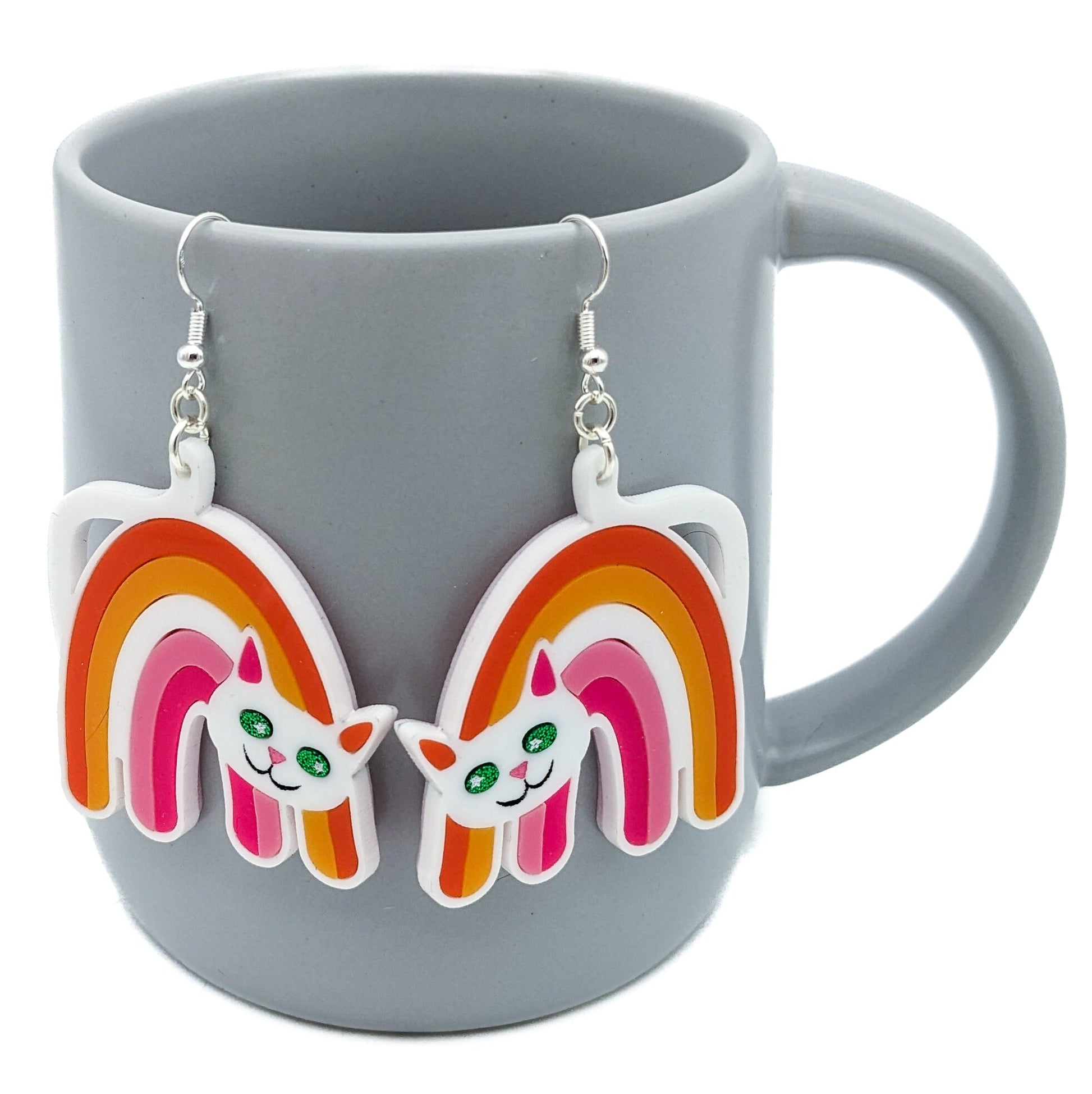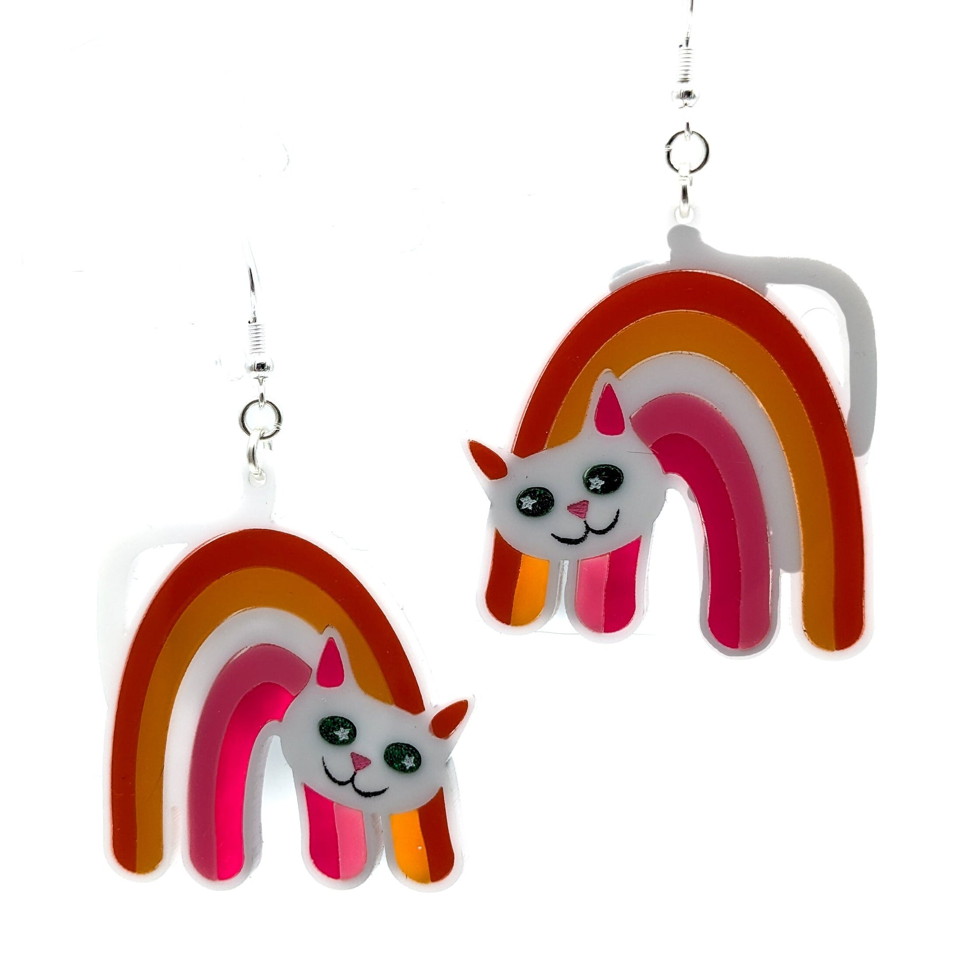 Lesbian Cat Earrings - Pride Flag Cat Earrings -Big Bold Lesbian Earrings - Fun Quirky Cute LGBTQ Laser Cut Acrylic