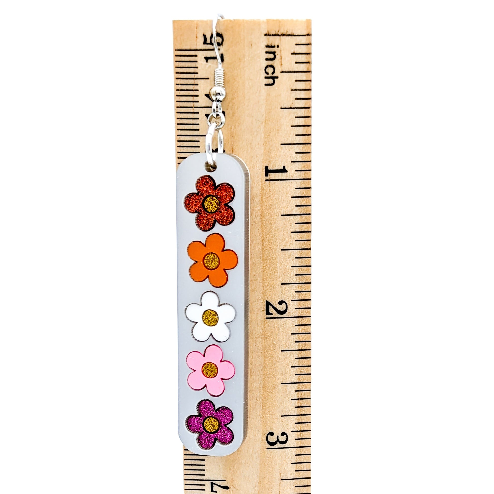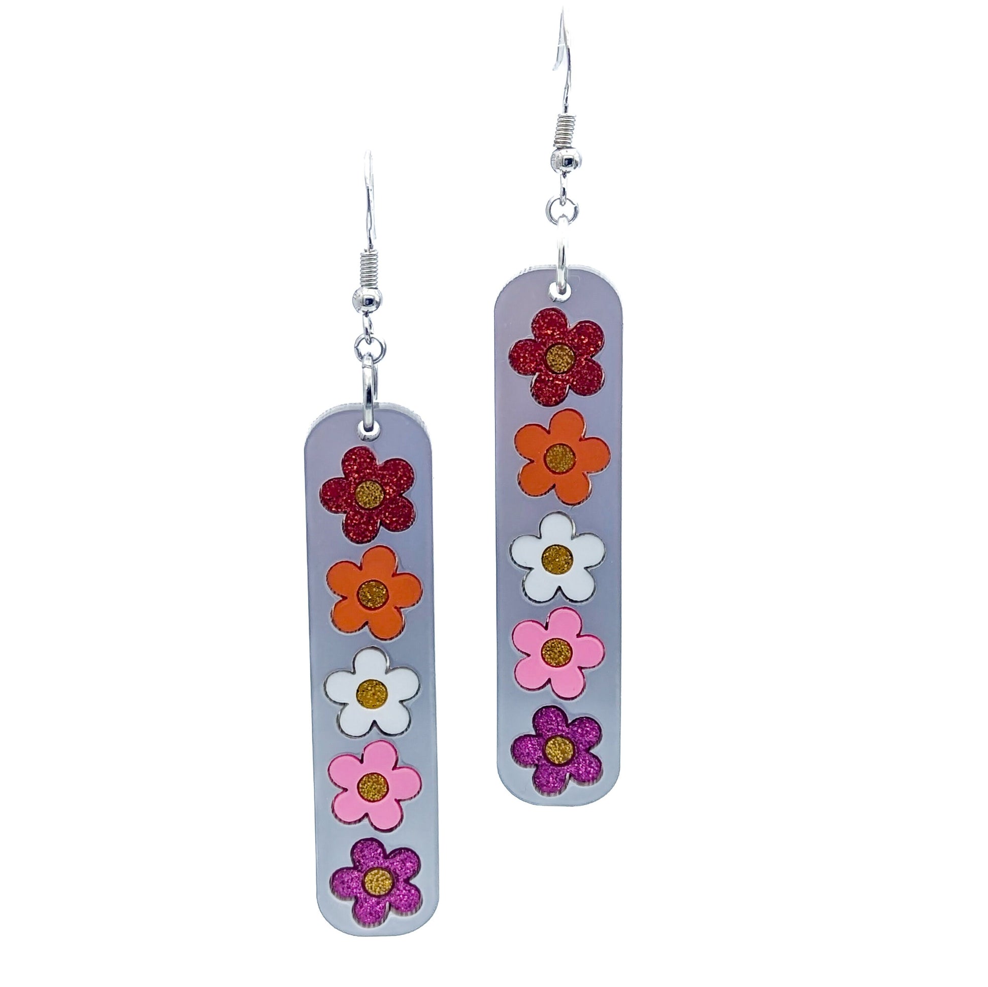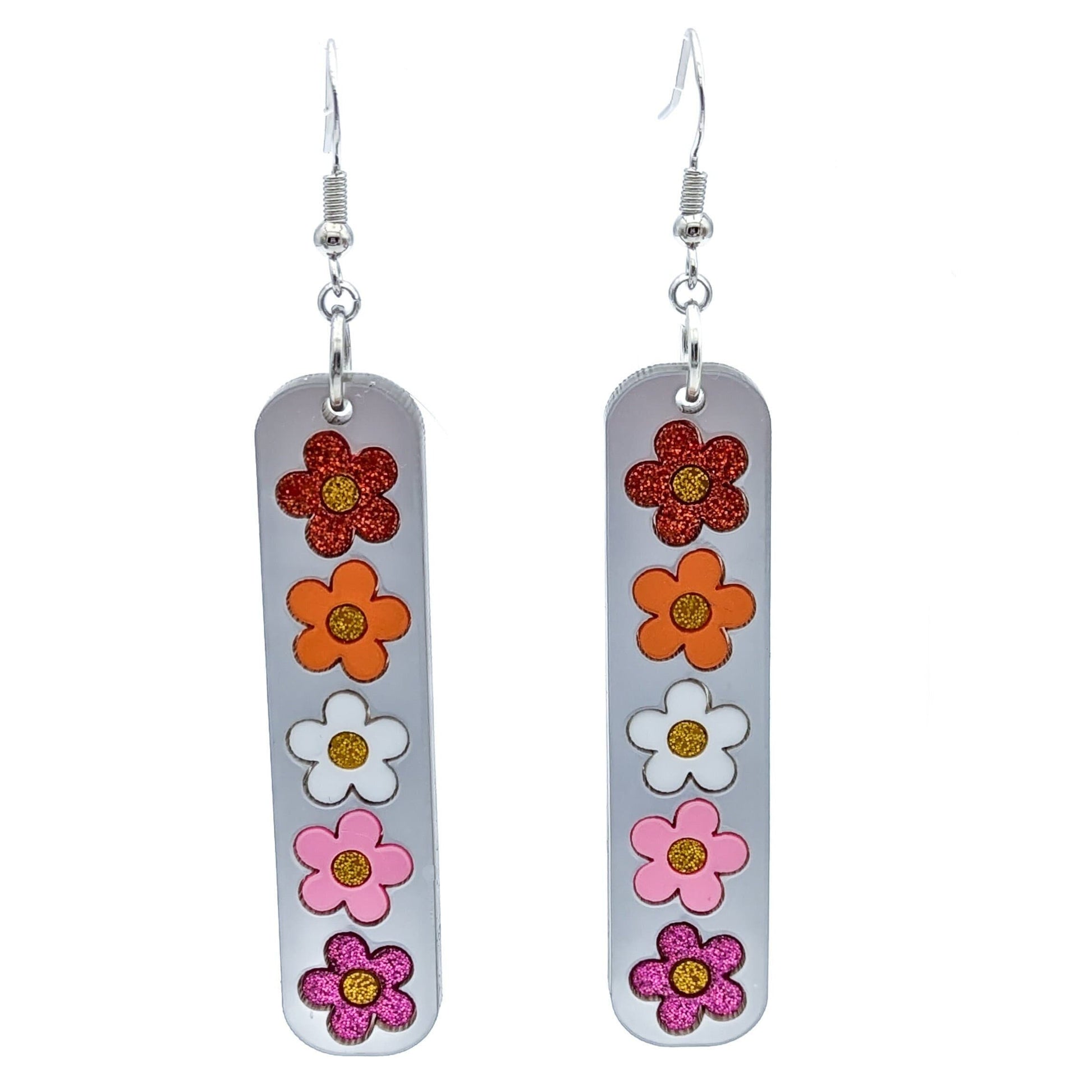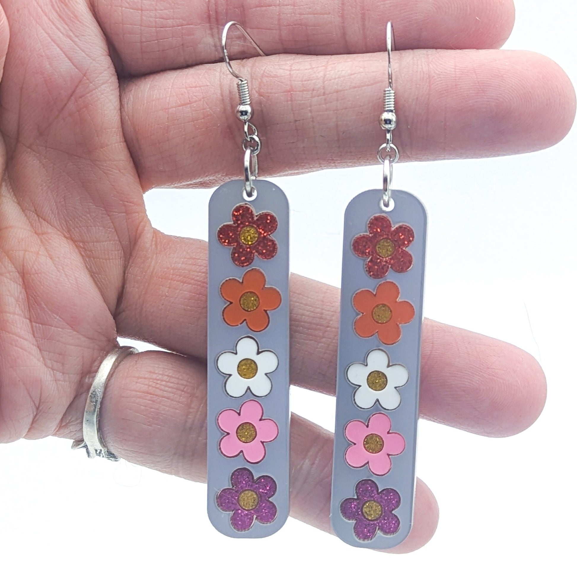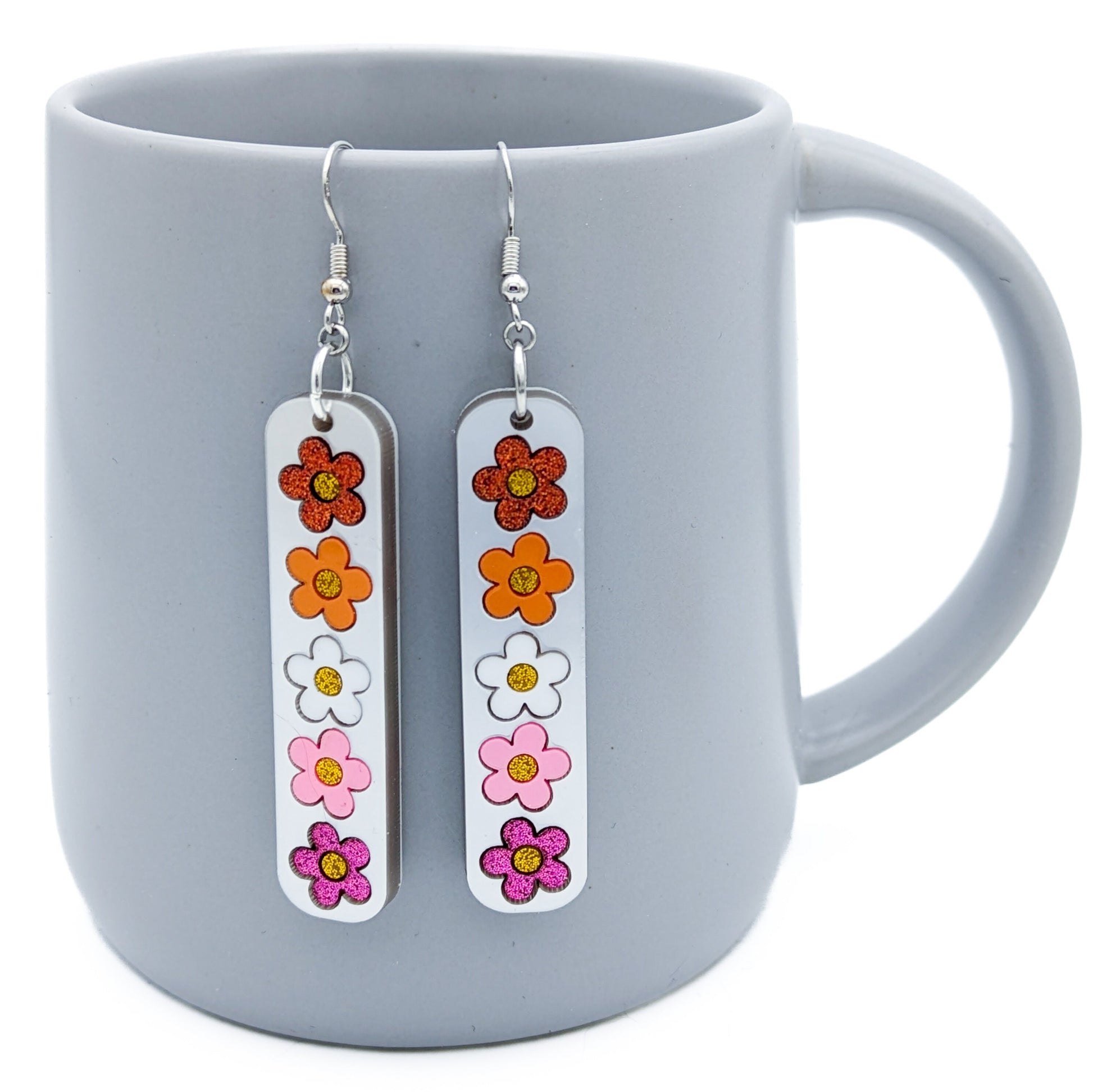 Lesbian Pride Flower Earrings - Pride Flag Daisy Earrings - Subtle, Lightweight Laser-Cut Acrylic Lesbian Flag Jewelry