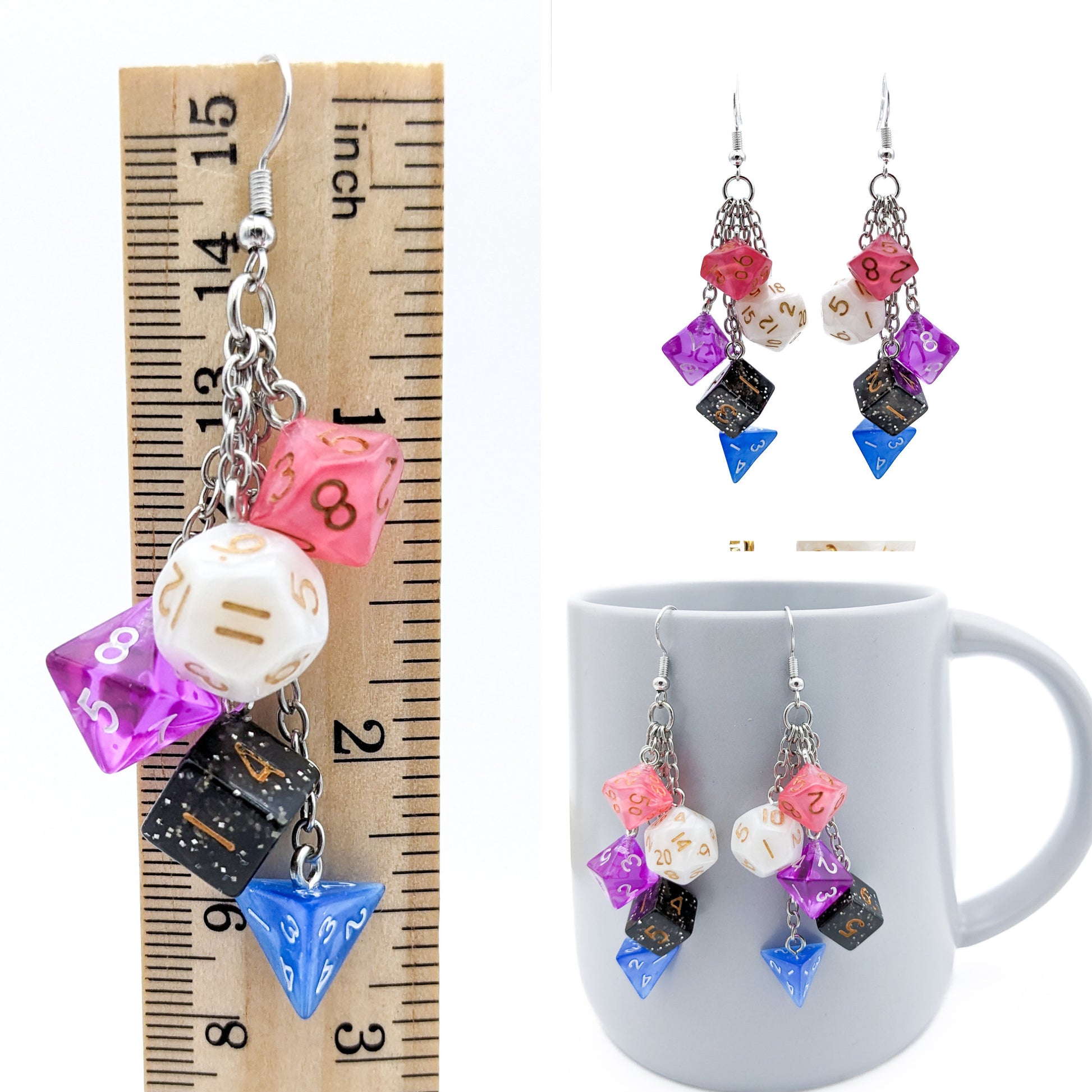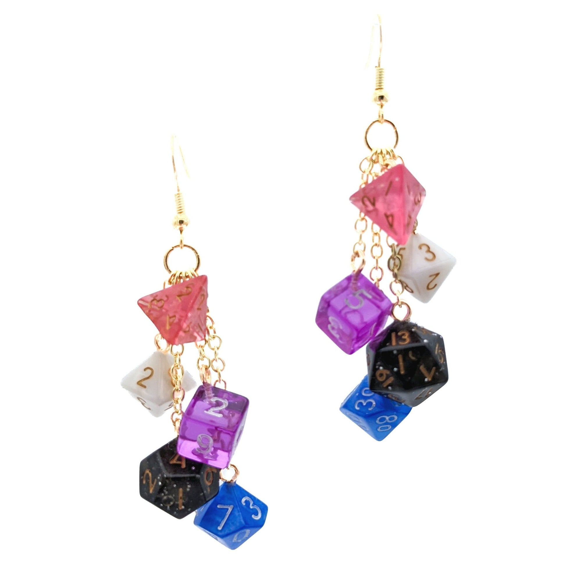 Mini Genderfluid Pride Dice Earrings - DND or Pathfinder