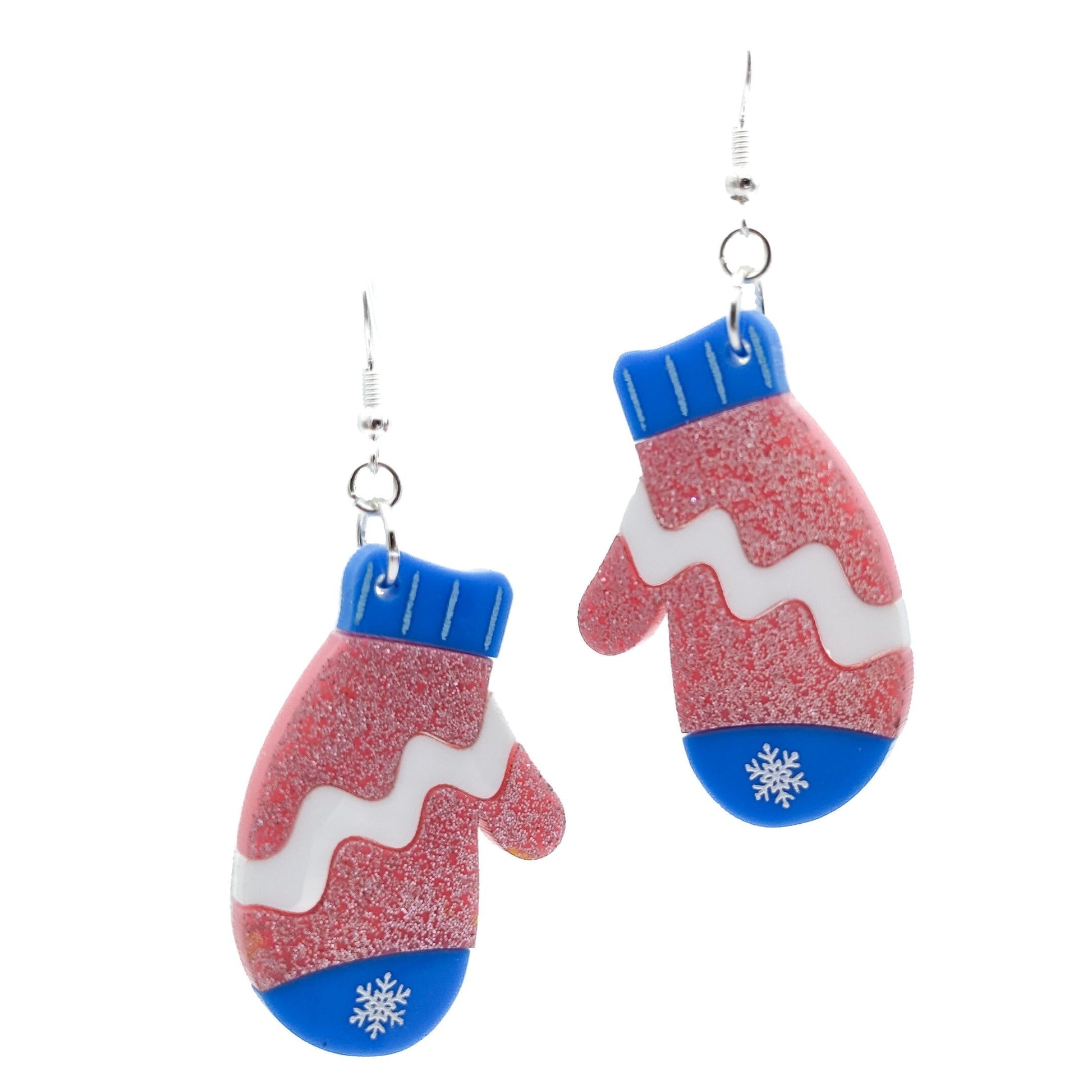 Pink and blue mittens with a wavy white stripe and a cute snowflake accent are a subtle and unique way to signal trans pride every day. These are made of laser-cut acrylic in glitter and solid colors that mirror the transgender pride flag. They have a white back and come with silver-plated earring hooks (if you prefer gold hooks, message me).