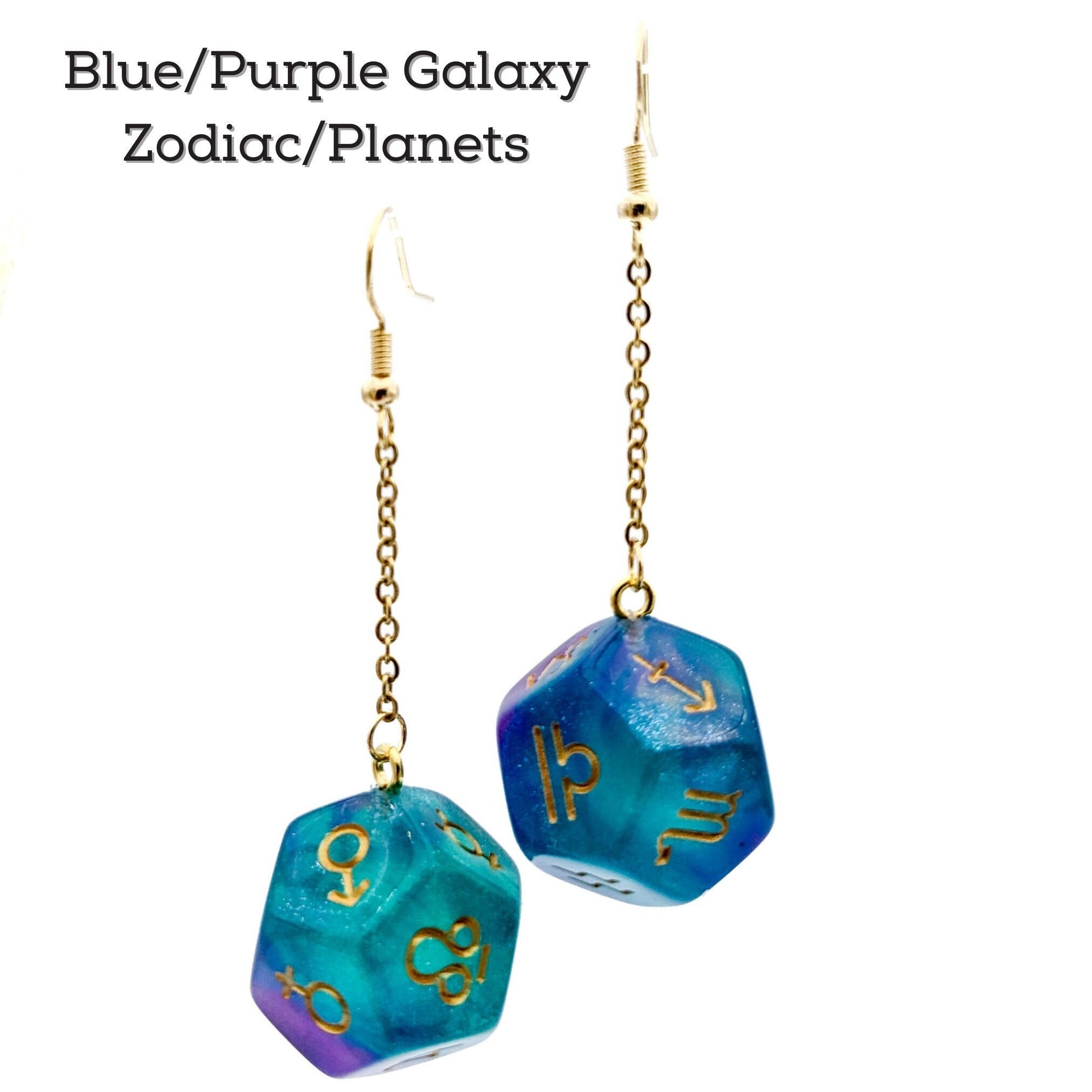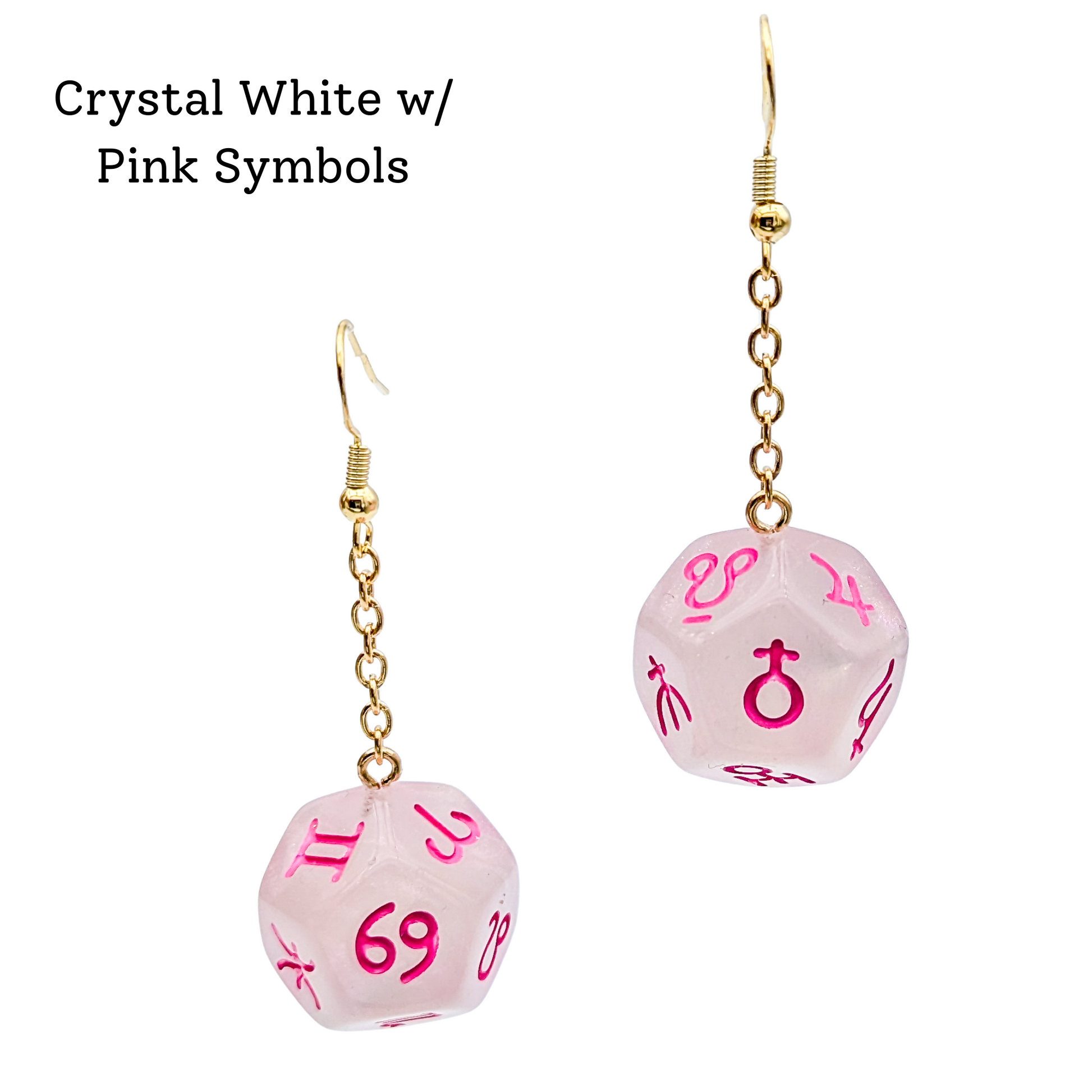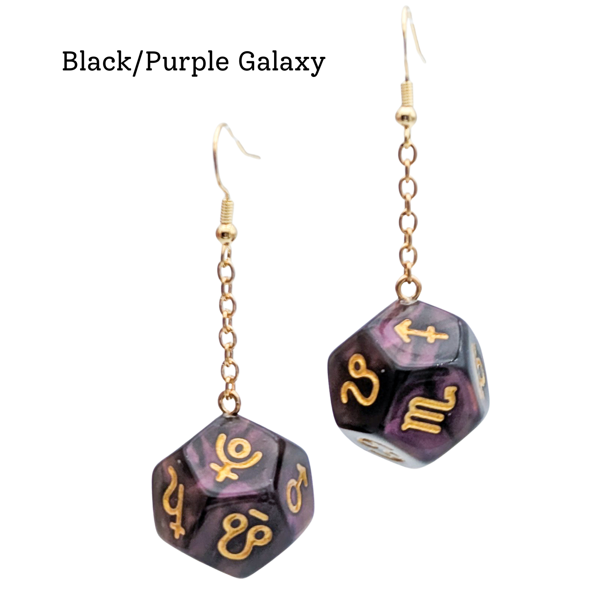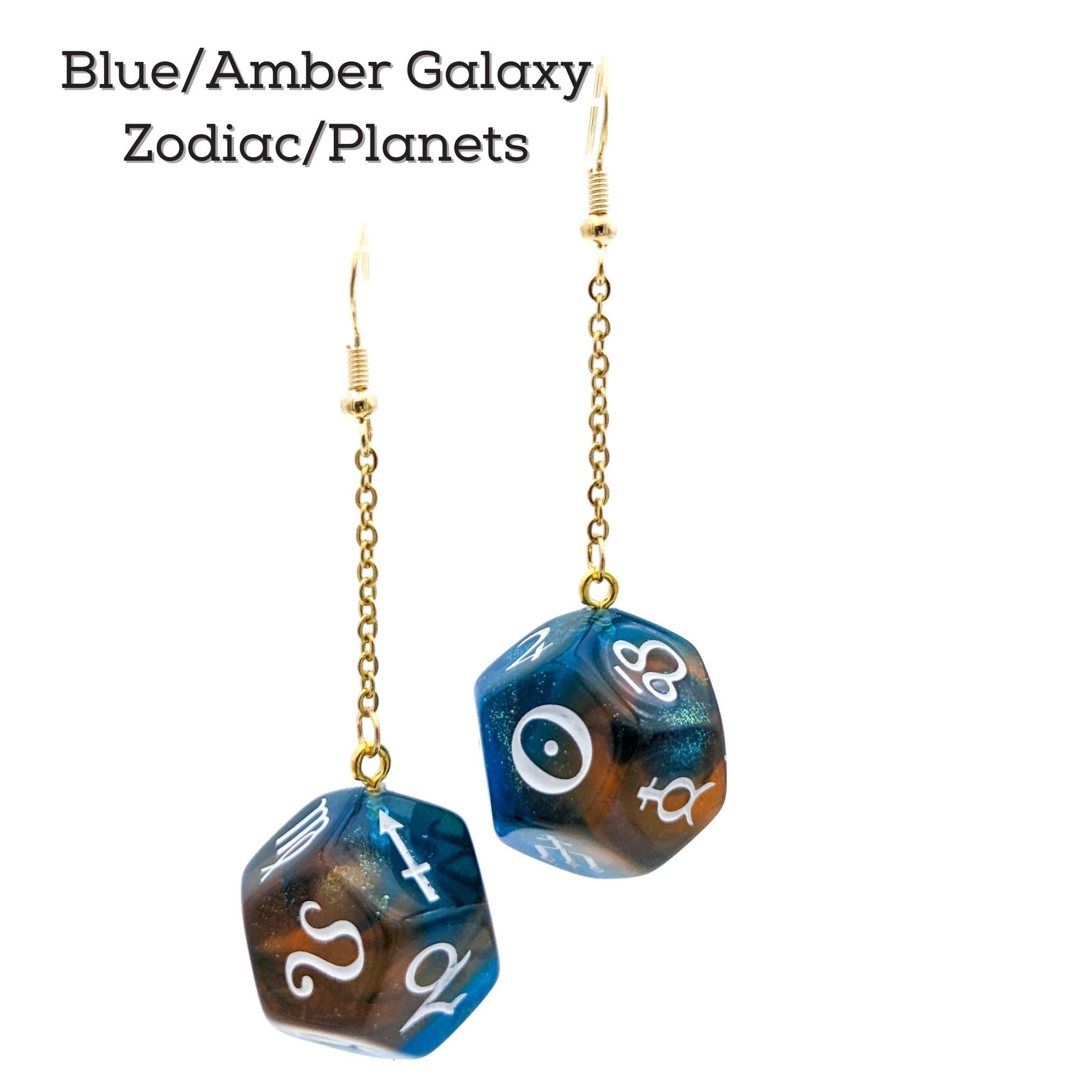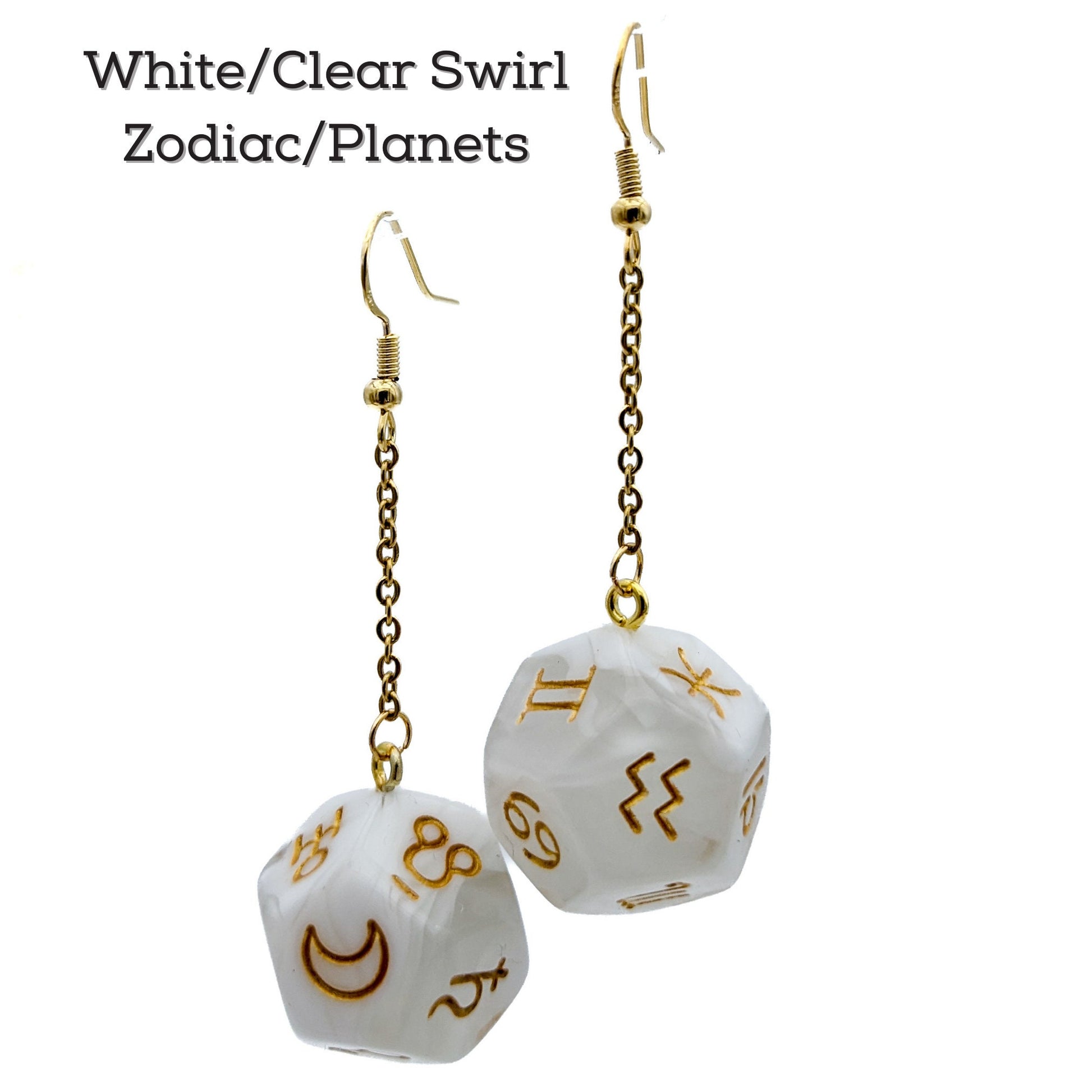 Zodiac & Planet Earrings - Polyhedral Dice with Astrology Signs/Astronomy Symbols